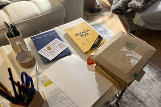 No te mando una foto del salón completo tras el proceso de empaquetar las agendas, porque te recordaría al cole de tus hijos y saldrías corriendo :P