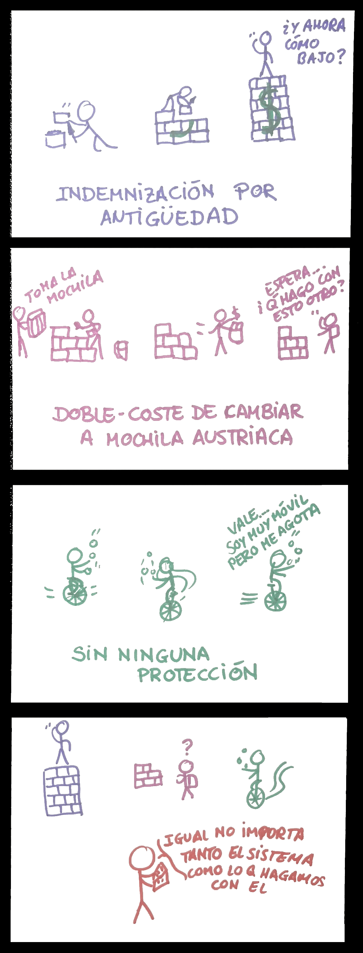 ✖️ Es caro de implantar (transición pagando a la vez indemnizaciones y provisión a la mochila).