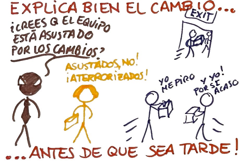 Así que les reúne y dice “Ya veo que algunos se están marchando. Yo les digo, solo si de corazón piensan que NO PUEDEN servir bajo mi mando, pueden marcharse”. Pero si no, quédense, porfa, que tenemos que construir un proyecto juntos.