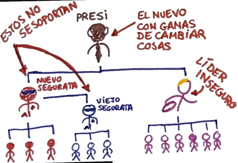 Los que ya le eran leales a él (a estos hay que convencerles de que tienen que trabajar con los anteriores para que los cambios funcionen)