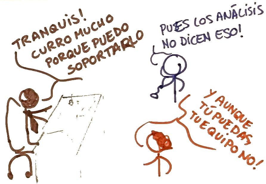 Es un mal ejemplo para su equipo. Como le dice Tony a Cary, “Si él puede currar todas esas horas, nosotros también”.