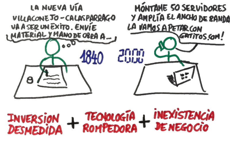 euforia tecnológica + dinero barato + promesas sin negocio.